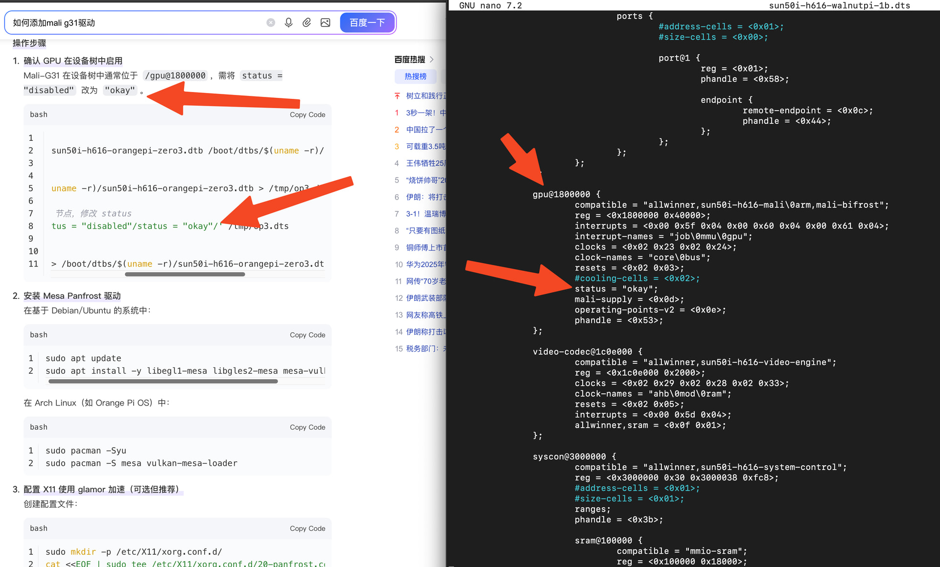 ————按照网上查到的教程去修改设备树,结果发现gpu的部分已经改好了,但仍然无法使用GPU驱动